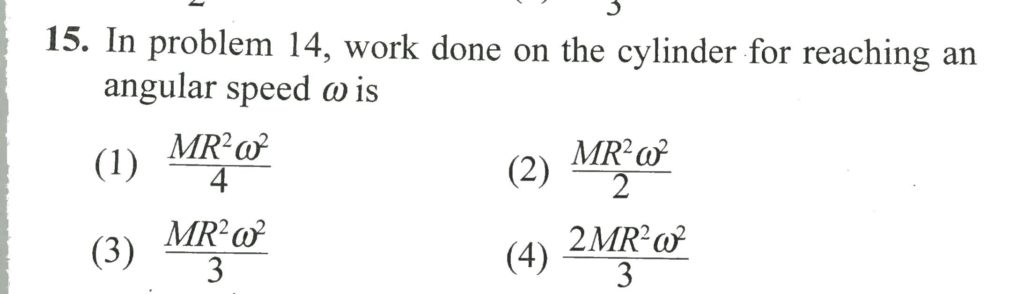 In problem 14, work done on the cylinder for reaching an angular speed omega is In problem 14 work done on the cylinder for reaching an angular speed omega is September 29, 2020 Category: Uncategorised (JEE Advanced Physics by BM Sharma + GMP Solutions) , Facebook Messenger WhatsApp Share this:TwitterFacebook Related