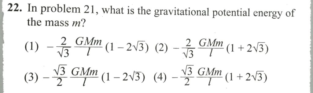 In problem 21, what is the gravitational potential energy of the mass m ? In problem 21 what is the gravitational potential energy of the mass m ? October 3, 2020 Category: Uncategorised (JEE Advanced Physics by BM Sharma + GMP Solutions) , Facebook Messenger WhatsApp Share this:TwitterFacebook Related