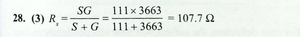 In q.27 , the combined resistance of the shunt and the galvanometer is In q.27 the combined resistance of the shunt and the galvanometer is November 13, 2020 Category: Uncategorised (JEE Advanced Physics by BM Sharma + GMP Solutions) , Facebook Messenger WhatsApp Share this:TwitterFacebook Related