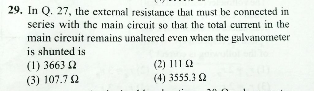 In Q.27, the external resistance that must be connected is series with the main circuit so that the total current in the main circuit remains unaltered even when the galvanometer is shunted is In q.27 the external resistance that must be connected is series with the main circuit so that the total current in the main circuit remains unaltered even when the galvanometer is shunted is November 13, 2020 Category: Uncategorised (JEE Advanced Physics by BM Sharma + GMP Solutions) , Facebook Messenger WhatsApp Share this:TwitterFacebook Related