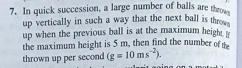 In quick succession, a large number of balls are thrown up vertically in such a way that the next ball is thrown up when the previous ball is at the maximum height. If the maximum height is 5 a large number of balls are thrown up vertically in such a way that the next ball is thrown up when the previous ball is at the maximum height. If the maximum height is 5 In quick succession September 19, 2020 Category: Uncategorised (JEE Advanced Physics by BM Sharma + GMP Solutions) , Facebook Messenger WhatsApp Share this:TwitterFacebook Related