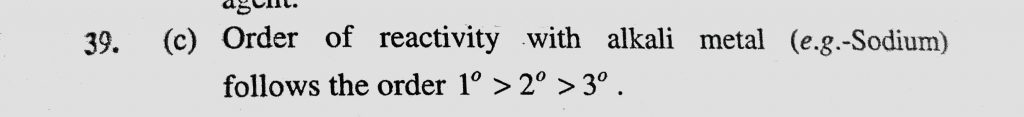 In reaction of alcohols with alkali metal, acid etc, which of the following alcohol will react fastest (a) Secondary (b) Tertiary (c) Primary (d) All equal acid etc In reaction of alcohols with alkali metal which of the following alcohol will react fastest (a) Secondary (b) Tertiary (c) Primary (d) All equal February 10, 2021 Category: Uncategorised (JEE Advanced Physics by BM Sharma + GMP Solutions) , Facebook Messenger WhatsApp Share this:TwitterFacebook Related