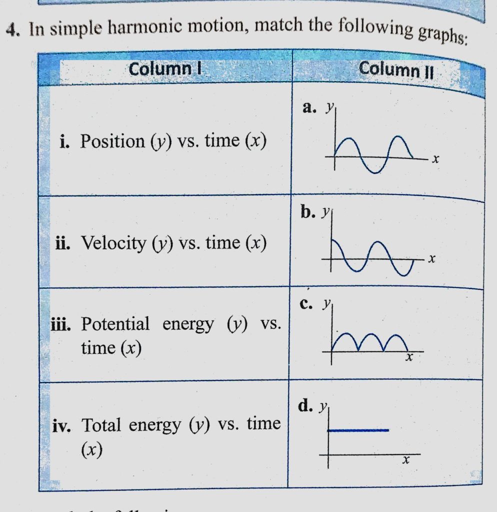 In simple harmonic motion, match the following graphs : In simple harmonic motion match the following graphs : October 31, 2020 Category: Uncategorised (JEE Advanced Physics by BM Sharma + GMP Solutions) , Facebook Messenger WhatsApp Share this:TwitterFacebook Related