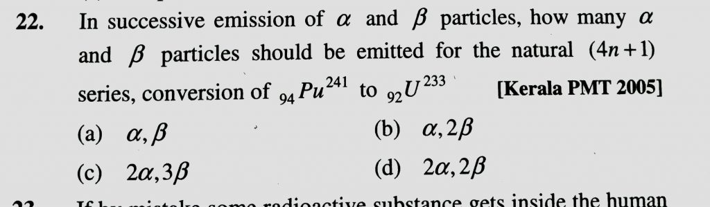 In successive emission of alpha and bita , how many alpha and bita particles should be emitted for the natural ( 4n + 1 ) series, conversion of 94Pu^241 to 92U^233 conversion of 94Pu^241 to 92U^233 how many alpha and bita particles should be emitted for the natural ( 4n + 1 ) series In successive emission of alpha and bita February 13, 2021 Category: Uncategorised (JEE Advanced Physics by BM Sharma + GMP Solutions) , Facebook Messenger WhatsApp Share this:TwitterFacebook Related