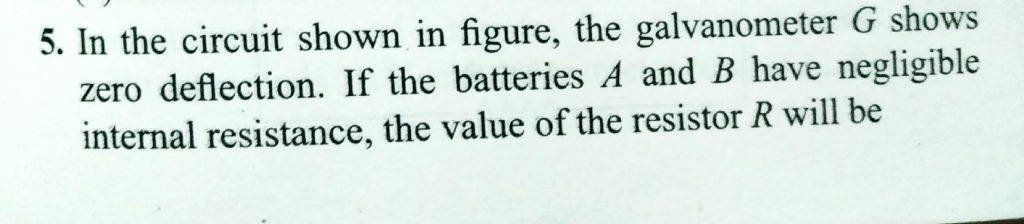 In teh circuit shown in figure , the galvanometerG shows zeo deflection . If the batteries A and B have negligible internal resistance, the value of the resistor R will be In teh circuit shown in figure the galvanometerG shows zeo deflection . If the batteries A and B have negligible internal resistance the value of the resistor R will be November 13, 2020 Category: Uncategorised (JEE Advanced Physics by BM Sharma + GMP Solutions) , Facebook Messenger WhatsApp Share this:TwitterFacebook Related