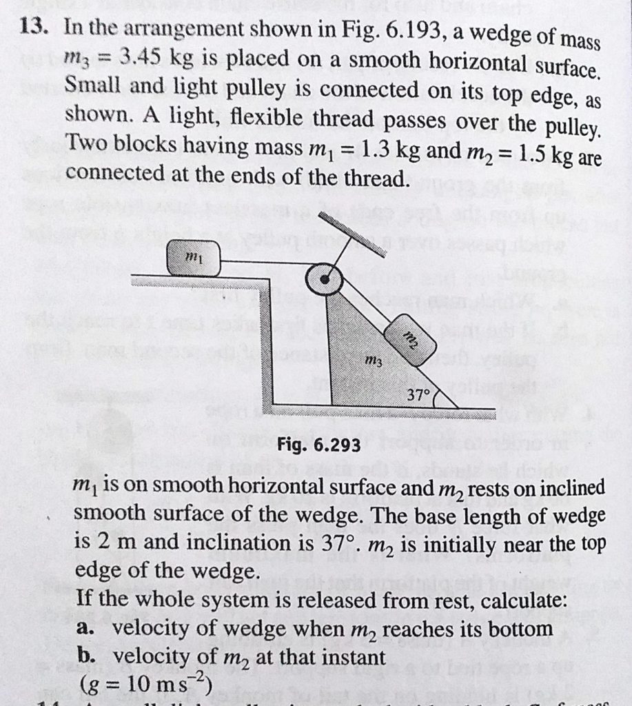 In the arrangement shown in Fig. 6.193, a wedge of mass m3 = 3.45 kg is placed on a smooth horizontal surface. Small and light pulley is connected on its top edge, as shown. A light, a wedge of mass m3 = 3.45 kg is placed on a smooth horizontal surface. Small and light pulley is connected on its top edge as shown. A light In the arrangement shown in Fig. 6.193 September 29, 2020 Category: Uncategorised (JEE Advanced Physics by BM Sharma + GMP Solutions) , Facebook Messenger WhatsApp Share this:TwitterFacebook Related