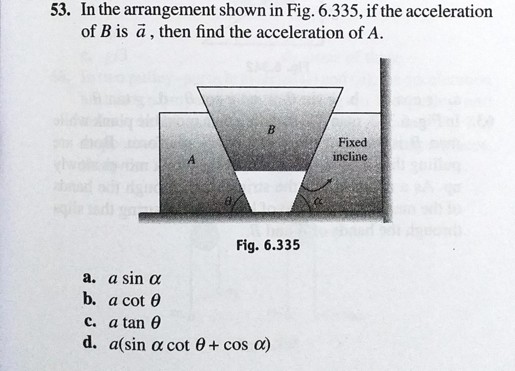 In the arrangement shown in Fig. 6.335, if the acceleration of B is a, then find the acceleration of A. if the acceleration of B is a In the arrangement shown in Fig. 6.335 then find the acceleration of A. September 29, 2020 Category: Uncategorised (JEE Advanced Physics by BM Sharma + GMP Solutions) , Facebook Messenger WhatsApp Share this:TwitterFacebook Related