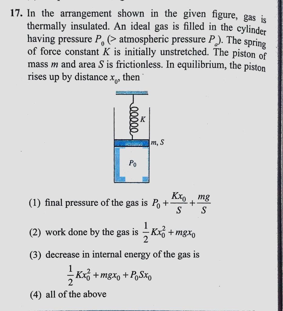 In the arrangement shown in the given figure, gas is thermally insulated. An ideal gas is filled in the cylinder having pressure P0 (>atmospheric pressure Pa). The spring of force constant gas is thermally insulated. An ideal gas is filled in the cylinder having pressure P0 (>atmospheric pressure Pa). The spring of force constant In the arrangement shown in the given figure October 28, 2020 Category: Uncategorised (JEE Advanced Physics by BM Sharma + GMP Solutions) , Facebook Messenger WhatsApp Share this:TwitterFacebook Related