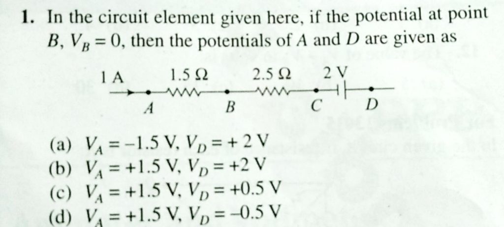 In the circuit element given here, if the potential at point B, Vb = 0, then the potentials of A and D are given as if the potential at point B In the circuit element given here then the potentials of A and D are given as Vb = 0 September 19, 2020 Category: Uncategorised (JEE Advanced Physics by BM Sharma + GMP Solutions) , Facebook Messenger WhatsApp Share this:TwitterFacebook Related