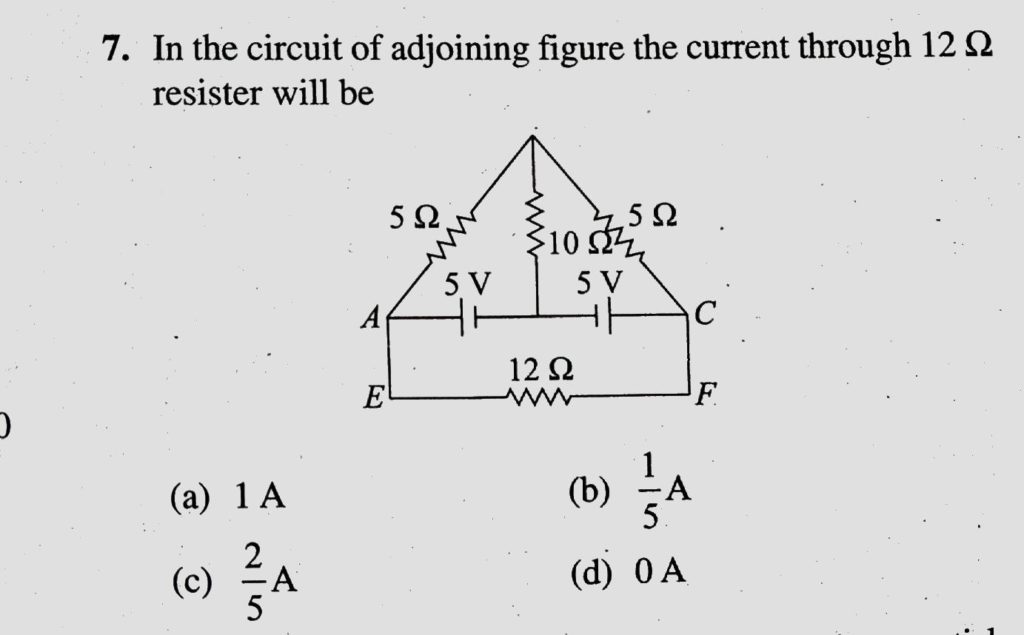 In the circuit of adjoining figure the current through 12 ohm resistor will be In the circuit of adjoining figure the current through 12 ohm resistor will be September 19, 2020 Category: Uncategorised (JEE Advanced Physics by BM Sharma + GMP Solutions) , Facebook Messenger WhatsApp Share this:TwitterFacebook Related