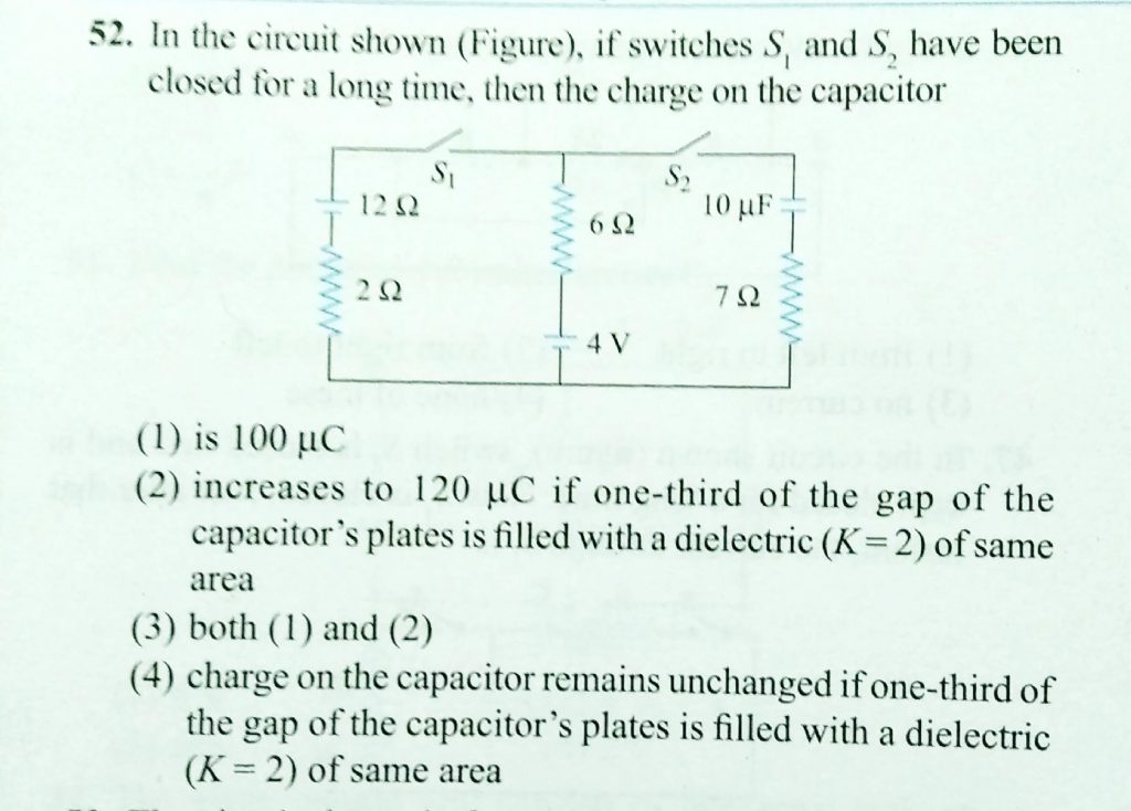 In the circuit shown fig, if switches S1 and S2 have been closed for a long time , then the charge on the capacitor if switches S1 and S2 have been closed for a long time In the circuit shown fig then the charge on the capacitor November 11, 2020 Category: Uncategorised (JEE Advanced Physics by BM Sharma + GMP Solutions) , Facebook Messenger WhatsApp Share this:TwitterFacebook Related