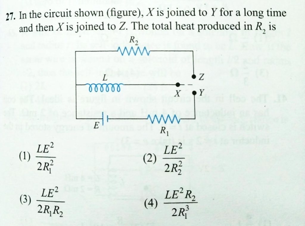 In the circuit shown ( figure ), X is joined to Y for a long time and then X is joined to Z. The total heat produced in R2 is In the circuit shown ( figure ) X is joined to Y for a long time and then X is joined to Z. The total heat produced in R2 is October 22, 2020 Category: Uncategorised (JEE Advanced Physics by BM Sharma + GMP Solutions) , Facebook Messenger WhatsApp Share this:TwitterFacebook Related