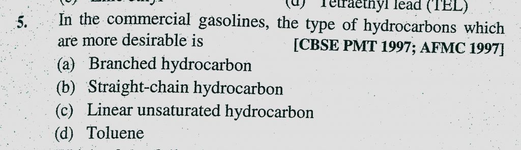 In the commercial gasolines, the types of hydrocarbons which are more desirable is (a) Branched hydrocarbon (b) Straight-chain hydrocarbon In the commercial gasolines the types of hydrocarbons which are more desirable is (a) Branched hydrocarbon (b) Straight-chain hydrocarbon December 12, 2020 Category: Uncategorised (JEE Advanced Physics by BM Sharma + GMP Solutions) , Facebook Messenger WhatsApp Share this:TwitterFacebook Related