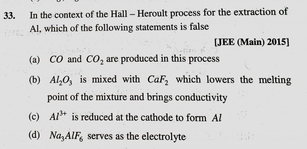 In the context of the Hall – Heroult process for the extraction of Al, which of the following statements is false (a) CO and CO2 are produced in this process In the context of the Hall - Heroult process for the extraction of Al which of the following statements is false (a) CO and CO2 are produced in this process November 12, 2020 Category: Uncategorised (JEE Advanced Physics by BM Sharma + GMP Solutions) , Facebook Messenger WhatsApp Share this:TwitterFacebook Related