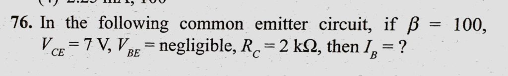 In the following common emitter circuit, if beta = 100, VCE = 7 V, VBE = negligible, RC = 2 kohm, then IB = ? if beta = 100 In the following common emitter circuit RC = 2 kohm then IB = ? VBE = negligible VCE = 7 V October 22, 2020 Category: Uncategorised (JEE Advanced Physics by BM Sharma + GMP Solutions) , Facebook Messenger WhatsApp Share this:TwitterFacebook Related