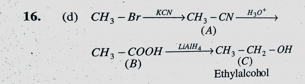 In the following sequence of reactions CH3-Br KCN A H3O+ B LiAlH4 C, the end product (C) is (a) Acetone (b) Methane (c) Acetaldehyde (d) Ethyl alcohol In the following sequence of reactions CH3-Br KCN A H3O+ B LiAlH4 C the end product (C) is (a) Acetone (b) Methane (c) Acetaldehyde (d) Ethyl alcohol December 17, 2020 Category: Uncategorised (JEE Advanced Physics by BM Sharma + GMP Solutions) , Facebook Messenger WhatsApp Share this:TwitterFacebook Related