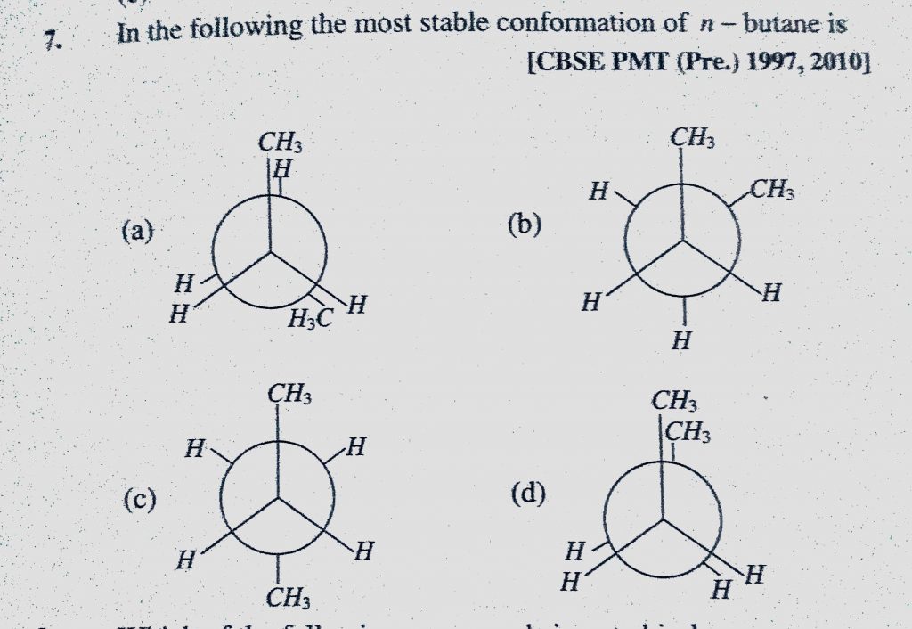 In the following the most stable conformation of n-butane is In the following the most stable conformation of n-butane is December 10, 2020 Category: Uncategorised (JEE Advanced Physics by BM Sharma + GMP Solutions) , Facebook Messenger WhatsApp Share this:TwitterFacebook Related