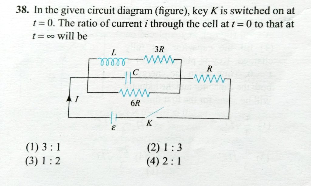In the given circuit diagram ( figure ), key K is switched on at t = 0 . The ratio of current i through the cell at t = 0 to that at t = infinity will be In the given circuit diagram ( figure ) key K is switched on at t = 0 . The ratio of current i through the cell at t = 0 to that at t = infinity will be October 22, 2020 Category: Uncategorised (JEE Advanced Physics by BM Sharma + GMP Solutions) , Facebook Messenger WhatsApp Share this:TwitterFacebook Related