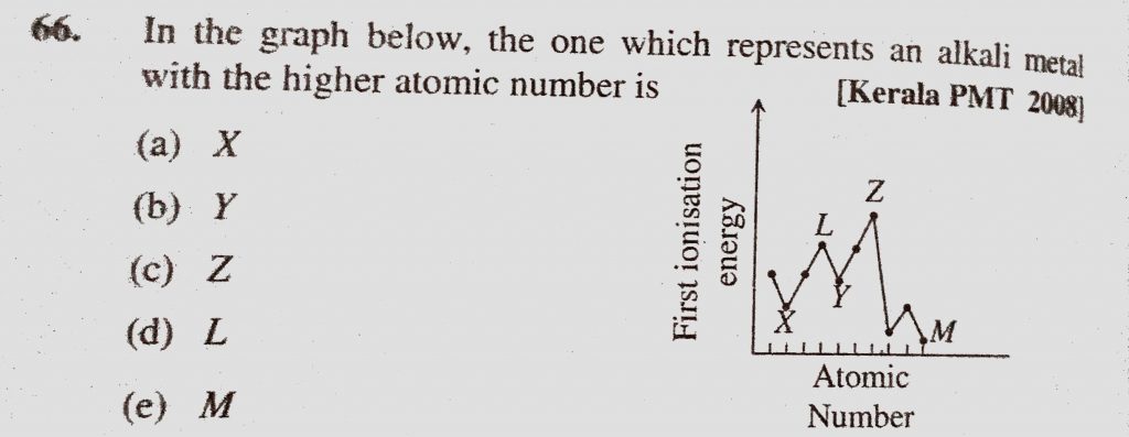 In the graph below, the one which represents an alkali metal with the higher atomic number is (a) X (b) Y (c) Z (d) L (e) M In the graph below the one which represents an alkali metal with the higher atomic number is (a) X (b) Y (c) Z (d) L (e) M November 13, 2020 Category: Uncategorised (JEE Advanced Physics by BM Sharma + GMP Solutions) , Facebook Messenger WhatsApp Share this:TwitterFacebook Related