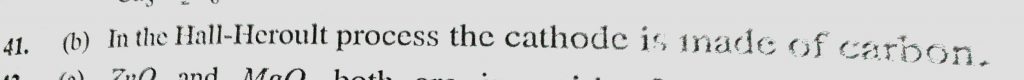 In the Hall – Heroult process, aluminium is formed at the cathode. The cathode is made out of (a) Platinum (b) Carbon aluminium is formed at the cathode. The cathode is made out of (a) Platinum (b) Carbon In the Hall - Heroult process November 12, 2020 Category: Uncategorised (JEE Advanced Physics by BM Sharma + GMP Solutions) , Facebook Messenger WhatsApp Share this:TwitterFacebook Related