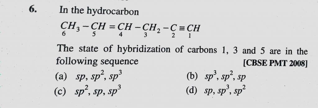 In the hydrocarbon The state of hybridization of carbons 1, 3 and 5 are in the following sequence 3 and 5 are in the following sequence In the hydrocarbon The state of hybridization of carbons 1 December 8, 2020 Category: Uncategorised (JEE Advanced Physics by BM Sharma + GMP Solutions) , Facebook Messenger WhatsApp Share this:TwitterFacebook Related