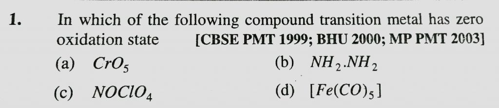 In which of the following compound transition metal has zero oxidation state (a) CrO5 (b) NH2.NH2 (c0 NOCLO4 (d0 [Fe(CO)5 ] In which of the following compound transition metal has zero oxidation state (a) CrO5 (b) NH2.NH2 (c0 NOCLO4 (d0 [Fe(CO)5 ] November 23, 2020 Category: Uncategorised (JEE Advanced Physics by BM Sharma + GMP Solutions) , Facebook Messenger WhatsApp Share this:TwitterFacebook Related