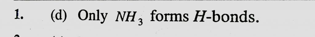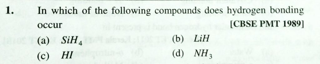 In which of the following compounds does hydrogen bonding occur (a) SiH4 (b) LiH (c) HI (d) NH3 In which of the following compounds does hydrogen bonding occur (a) SiH4 (b) LiH (c) HI (d) NH3 December 9, 2020 Category: Uncategorised (JEE Advanced Physics by BM Sharma + GMP Solutions) , Facebook Messenger WhatsApp Share this:TwitterFacebook Related