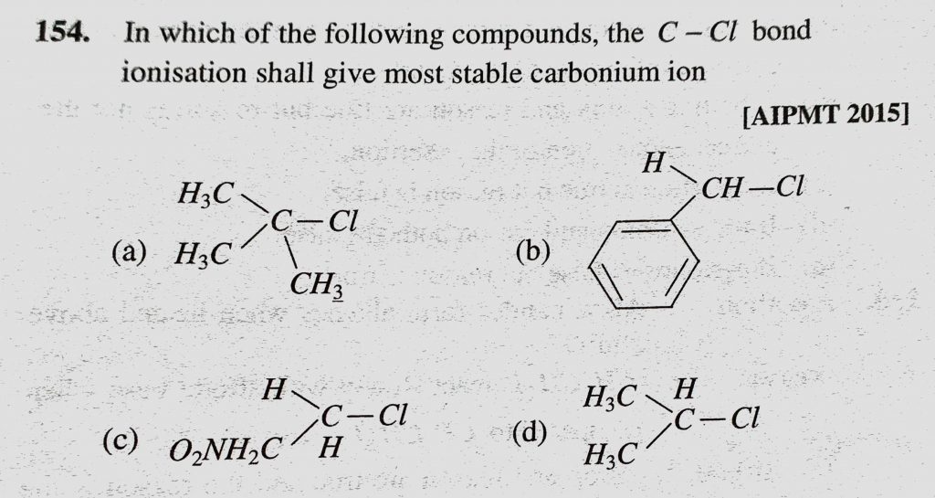 In which of the following compounds, the C – Cl bond ionisation shall give most stable carbonium ion In which of the following compounds the C - Cl bond ionisation shall give most stable carbonium ion February 9, 2021 Category: Uncategorised (JEE Advanced Physics by BM Sharma + GMP Solutions) , Facebook Messenger WhatsApp Share this:TwitterFacebook Related