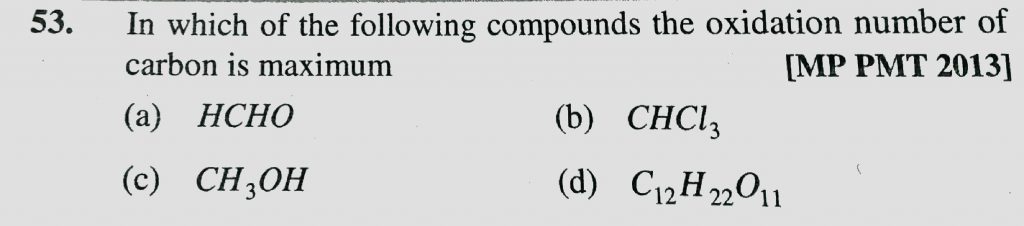 In which of the following compounds the oxidation number of a carbon is maximum In which of the following compounds the oxidation number of a carbon is maximum November 24, 2020 Category: Uncategorised (JEE Advanced Physics by BM Sharma + GMP Solutions) , Facebook Messenger WhatsApp Share this:TwitterFacebook Related