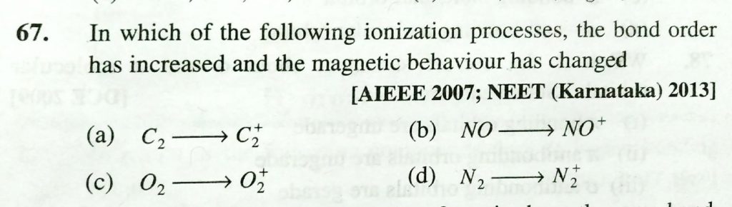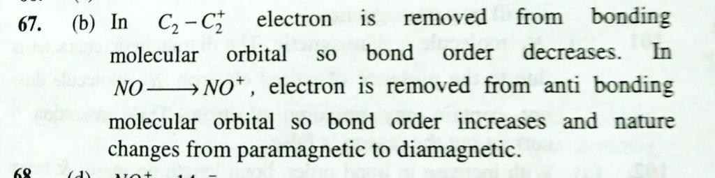 In which of the following ionization processes , the bond order has increased and the magnetic behaviour has changed The bond order in NO is 2.5 while that in NO^+ is 3. Which of the follwoing statements is true for these two species December 8, 2020 Category: Uncategorised (JEE Advanced Physics by BM Sharma + GMP Solutions) , Facebook Messenger WhatsApp Share this:TwitterFacebook Related