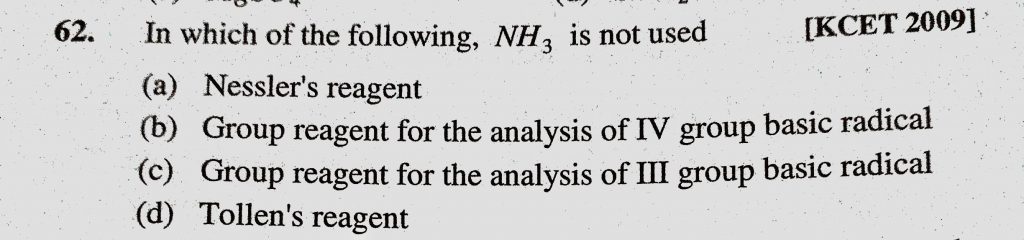 In which of the following , NH3 is not used (a) Nessler’s reagent (b) Group reagent for the analysis of IV group basic radical In which of the following NH3 is not used (a) Nessler's reagent (b) Group reagent for the analysis of IV group basic radical December 7, 2020 Category: Uncategorised (JEE Advanced Physics by BM Sharma + GMP Solutions) , Facebook Messenger WhatsApp Share this:TwitterFacebook Related