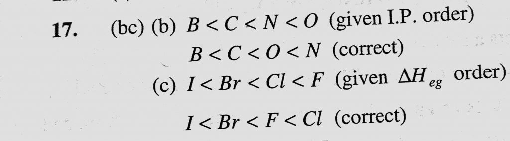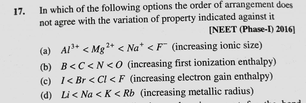 In which of the following options the order of arrangement does not agree with the variation of property indicated against it In which of the following options the order of arrangement does not agree with the variation of property indicated against it November 24, 2020 Category: Uncategorised (JEE Advanced Physics by BM Sharma + GMP Solutions) , Facebook Messenger WhatsApp Share this:TwitterFacebook Related