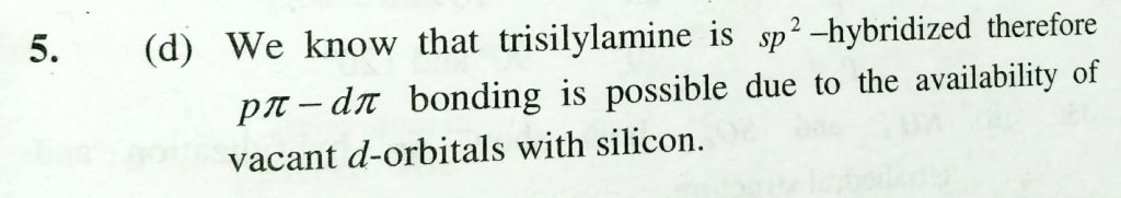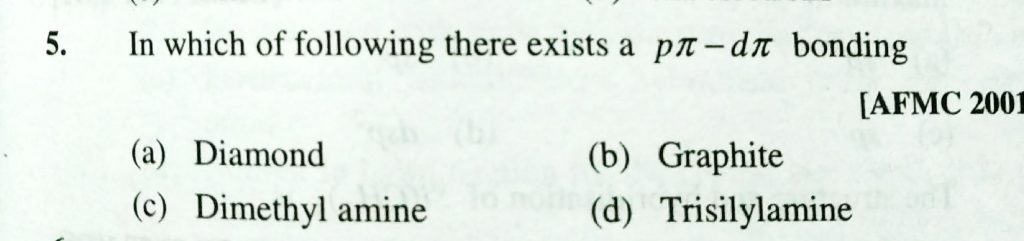 In which of the following there exists a p pie – d pie bonding (a) Diamond (b) Graphite (c) Dimethyl amine (d) Trisilylamine In which of the following there exists a p pie - d pie bonding (a) Diamond (b) Graphite (c) Dimethyl amine (d) Trisilylamine December 2, 2020 Category: Uncategorised (JEE Advanced Physics by BM Sharma + GMP Solutions) , Facebook Messenger WhatsApp Share this:TwitterFacebook Related