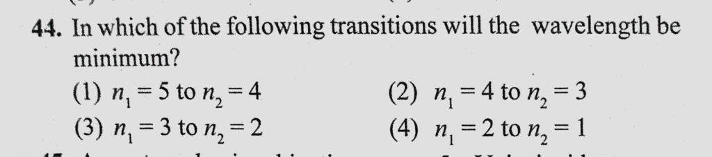 In which of the following transitions will the wavelength be minimum? In which of the following transitions will the wavelength be minimum? October 15, 2020 Category: Uncategorised (JEE Advanced Physics by BM Sharma + GMP Solutions) , Facebook Messenger WhatsApp Share this:TwitterFacebook Related