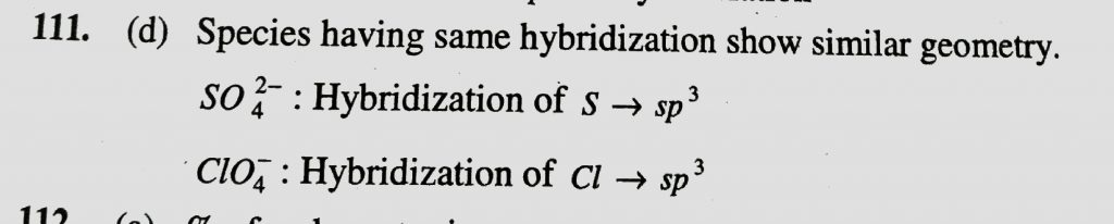 In which pair of species , both species do have the similar geometry (a) CO2 , SO2 (b) NH3 , BH3 (c) CO3^2- , SO3^2- (d) SO4^2- , CLO4^- BH3 (c) CO3^2- both species do have the similar geometry (a) CO2 CLO4^- In which pair of species SO2 (b) NH3 SO3^2- (d) SO4^2- December 6, 2020 Category: Uncategorised (JEE Advanced Physics by BM Sharma + GMP Solutions) , Facebook Messenger WhatsApp Share this:TwitterFacebook Related