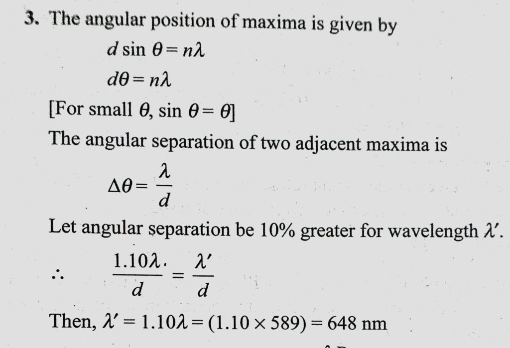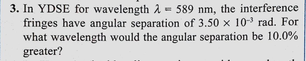 In YDSE for wavelength lemda = 589 nm, the inteference fringes have angular separation of 3.50 * 10^-3 rad. For what wavelength would the angular separation be 10.0% greater? In YDSE for wavelength lemda = 589 nm the inteference fringes have angular separation of 3.50 * 10^-3 rad. For what wavelength would the angular separation be 10.0% greater? October 9, 2020 Category: Uncategorised (JEE Advanced Physics by BM Sharma + GMP Solutions) , Facebook Messenger WhatsApp Share this:TwitterFacebook Related