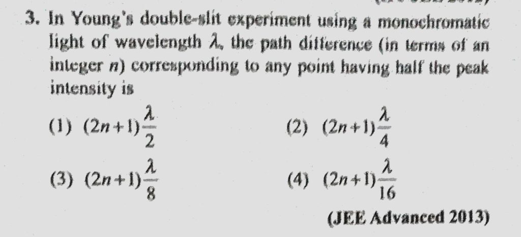 In Young’s double-slit experiment using a monochromatic light of wavelength lemda, the path difference ( in terms of an integer n) corresponding to any point having half the peak In Young's double-slit experiment using a monochromatic light of wavelength lemda the path difference ( in terms of an integer n) corresponding to any point having half the peak October 11, 2020 Category: Uncategorised (JEE Advanced Physics by BM Sharma + GMP Solutions) , Facebook Messenger WhatsApp Share this:TwitterFacebook Related