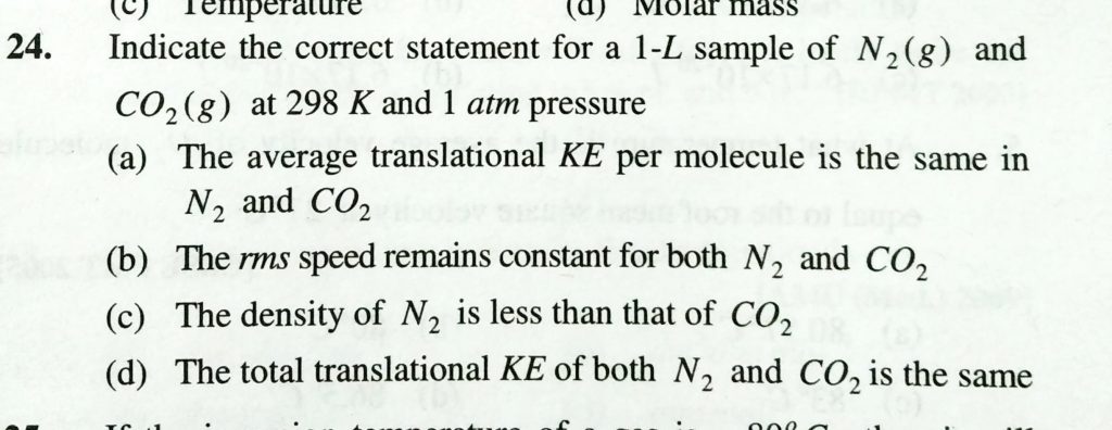 Indicate the correct statement for 1- L sample of N2 (g) and CO2 (g) at 298 K and 1 atm pressure Indicate the correct statement for 1- L sample of N2 (g) and CO2 (g) at 298 K and 1 atm pressure February 11, 2021 Category: Uncategorised (JEE Advanced Physics by BM Sharma + GMP Solutions) , Facebook Messenger WhatsApp Share this:TwitterFacebook Related