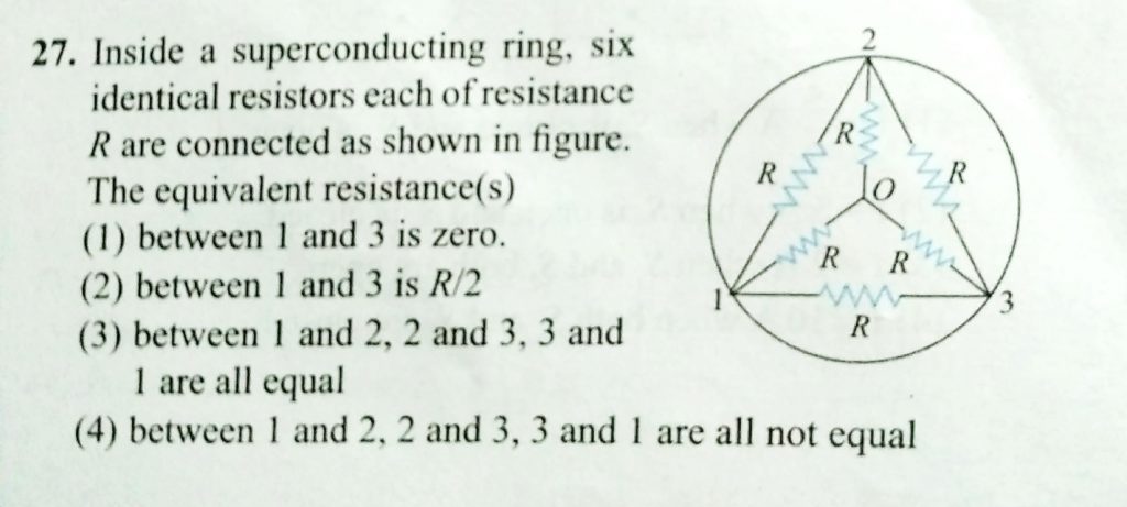 Inside the superconducting ring , six identical resistors each of resistance R are connected as shown in figure. The equivalent resistances. Inside the superconducting ring six identical resistors each of resistance R are connected as shown in figure. The equivalent resistances. November 12, 2020 Category: Uncategorised (JEE Advanced Physics by BM Sharma + GMP Solutions) , Facebook Messenger WhatsApp Share this:TwitterFacebook Related
