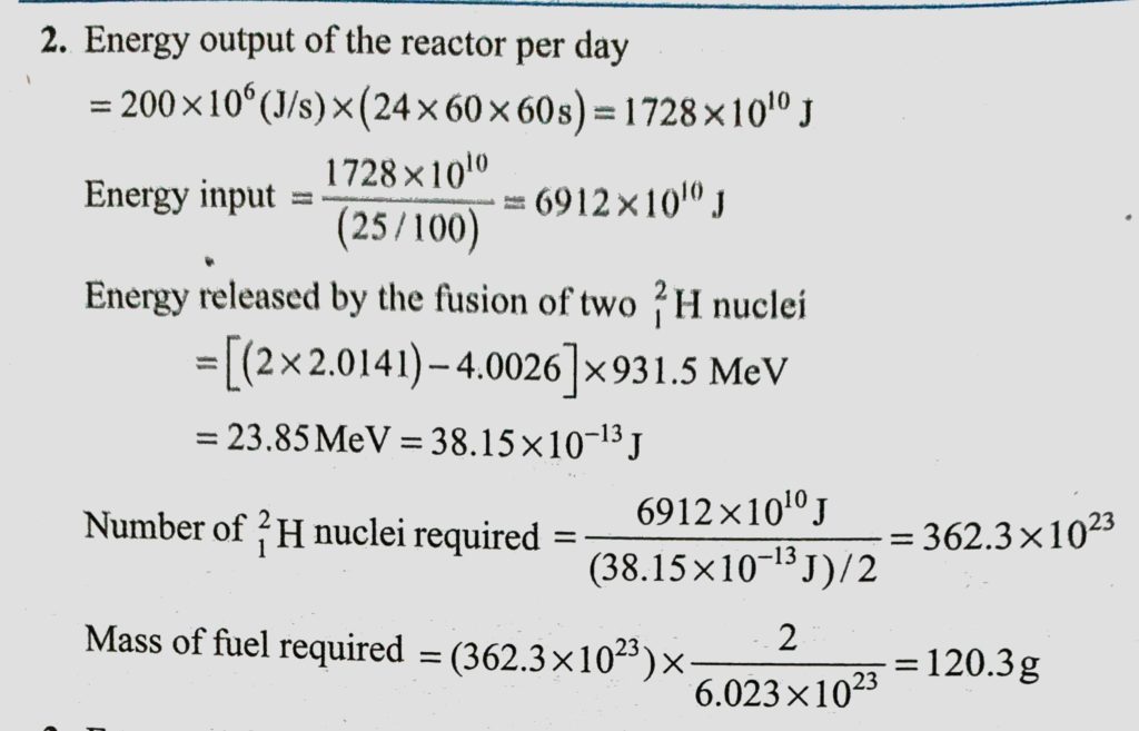 It is proposed to use nuclear fission reaction : 2H1 + 2H1 gives 4He2 in a nuclear reactor of 200 MW rating. If the energy from the above reaction is used with a 25% efficiency in the reactor, how many grams how many grams It is proposed to use nuclear fission reaction : 2H1 + 2H1 gives 4He2 in a nuclear reactor of 200 MW rating. If the energy from the above reaction is used with a 25% efficiency in the reactor October 17, 2020 Category: Uncategorised (JEE Advanced Physics by BM Sharma + GMP Solutions) , Facebook Messenger WhatsApp Share this:TwitterFacebook Related