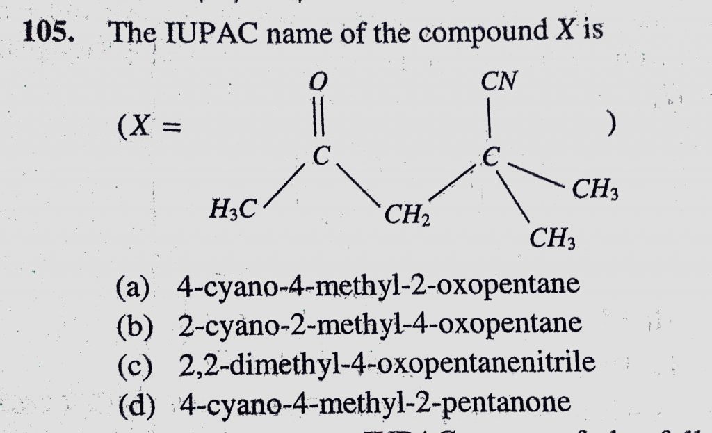 IUPAC name for the compound is (a) alpha-methyl cyclohexanone (b) 2-methyl cyclohexanone IUPAC name for the compound is (a) alpha-methyl cyclohexanone (b) 2-methyl cyclohexanone December 11, 2020 Category: Uncategorised (JEE Advanced Physics by BM Sharma + GMP Solutions) , Facebook Messenger WhatsApp Share this:TwitterFacebook Related