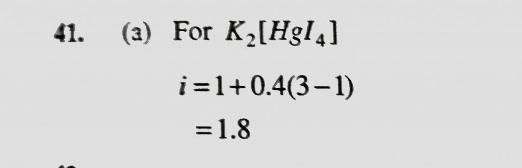 K2HgI4 is 40% ionised in aqueous solution . The value of its van’t Hoff factor ( i) is (a) 1.8 (b) 2.2 (c) 2.0 (d) 1.6 K2HgI4 is 40% ionised in aqueous solution . The value of its van't Hoff factor ( i) is (a) 1.8 (b) 2.2 (c) 2.0 (d) 1.6 December 14, 2020 Category: Uncategorised (JEE Advanced Physics by BM Sharma + GMP Solutions) , Facebook Messenger WhatsApp Share this:TwitterFacebook Related
