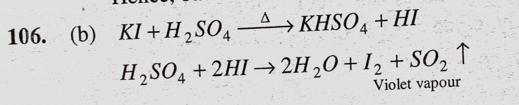 KI when heated with conc. H2SO4 gives (a) HI (b) I2 (c) HIO3 (d) KIO3 KI when heated with conc. H2SO4 gives (a) HI (b) I2 (c) HIO3 (d) KIO3 November 24, 2020 Category: Uncategorised (JEE Advanced Physics by BM Sharma + GMP Solutions) , Facebook Messenger WhatsApp Share this:TwitterFacebook Related
