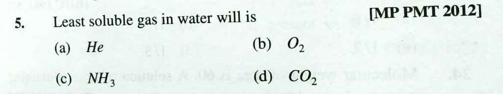 Least soluble gas in water will is (a) He (b) O2 (c) NH3 (d) CO2 Least soluble gas in water will is (a) He (b) O2 (c) NH3 (d) CO2 December 10, 2020 Category: Uncategorised (JEE Advanced Physics by BM Sharma + GMP Solutions) , Facebook Messenger WhatsApp Share this:TwitterFacebook Related