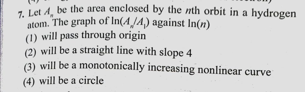 Let An be the area enclosed by the nth orbit in a hydrogen atom. The graph of ln(An/A1) against ln(n) Let An be the area enclosed by the nth orbit in a hydrogen atom. The graph of ln(An/A1) against ln(n) October 16, 2020 Category: Uncategorised (JEE Advanced Physics by BM Sharma + GMP Solutions) , Facebook Messenger WhatsApp Share this:TwitterFacebook Related