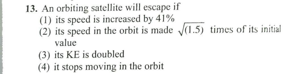 An orbiting satellite will escape if (1) its speed in increased by 41% An orbiting satellite will escape if (1) its speed in increased by 41% October 5, 2020 Category: Uncategorised (JEE Advanced Physics by BM Sharma + GMP Solutions) , Facebook Messenger WhatsApp Share this:TwitterFacebook Related