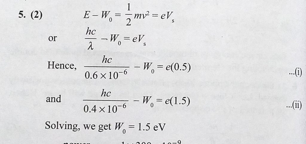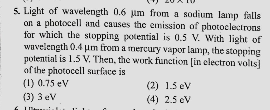 Light of wavelength 0.6 mu m from a sodium lamp falls on a photocell and causes the emission of photoelectrons for which the stopping potential is 0.5 V. With light of wavelength Light of wavelength 0.6 mu m from a sodium lamp falls on a photocell and causes the emission of photoelectrons for which the stopping potential is 0.5 V. With light of wavelength October 12, 2020 Category: Uncategorised (JEE Advanced Physics by BM Sharma + GMP Solutions) , Facebook Messenger WhatsApp Share this:TwitterFacebook Related