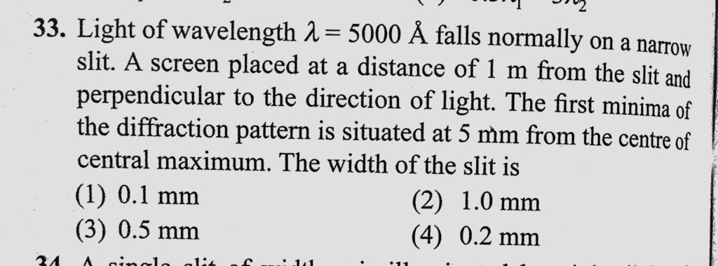 Light of wavelength lemda = 5000 A falls normally on a narrow slit. A screen placed at a distance of 1 m from the slit and perpendicular to the direction of light. The first minima of Light of wavelength lemda = 5000 A falls normally on a narrow slit. A screen placed at a distance of 1 m from the slit and perpendicular to the direction of light. The first minima of October 12, 2020 Category: Uncategorised (JEE Advanced Physics by BM Sharma + GMP Solutions) , Facebook Messenger WhatsApp Share this:TwitterFacebook Related