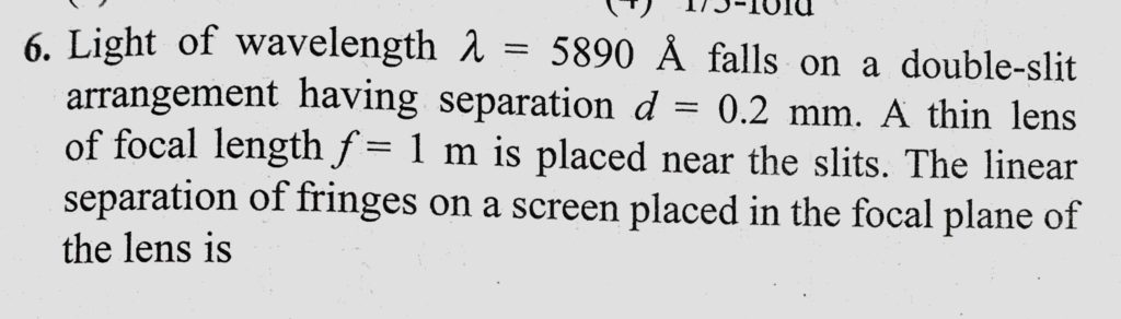 Light of wavelength lemda = 5890 A falls on a double-slit arrangement having separation d= 0.2 mm. A thin lens of focal length f = 1 m is placed near the slits. The linear Light of wavelength lemda = 5890 A falls on a double-slit arrangement having separation d= 0.2 mm. A thin lens of focal length f = 1 m is placed near the slits. The linear October 10, 2020 Category: Uncategorised (JEE Advanced Physics by BM Sharma + GMP Solutions) , Facebook Messenger WhatsApp Share this:TwitterFacebook Related