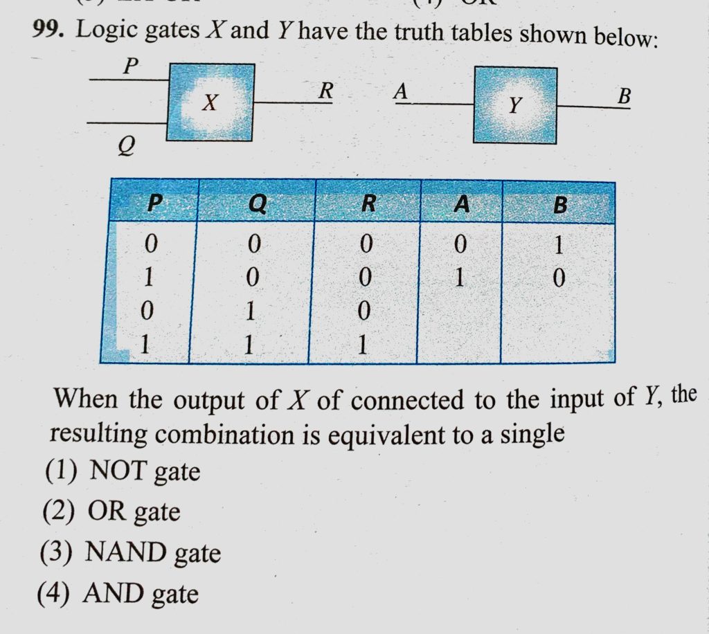 Logic gates X and Y have the truth tables shown below : When the output of X of connected to the input of Y, the resulting combination is equivalent to a single Logic gates X and Y have the truth tables shown below : When the output of X of connected to the input of Y the resulting combination is equivalent to a single October 22, 2020 Category: Uncategorised (JEE Advanced Physics by BM Sharma + GMP Solutions) , Facebook Messenger WhatsApp Share this:TwitterFacebook Related